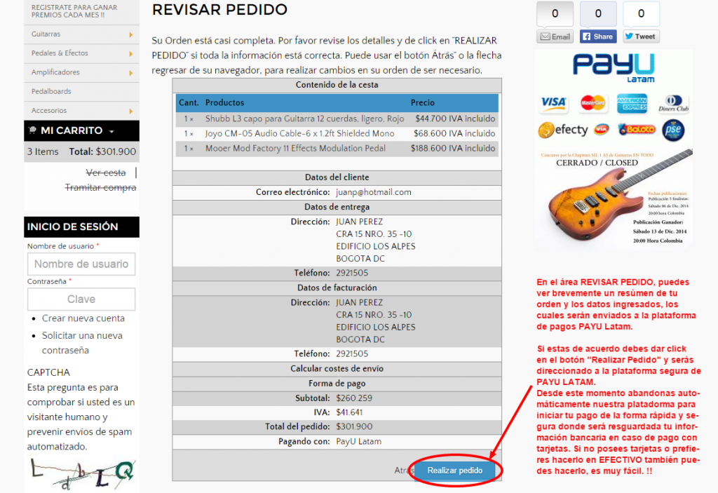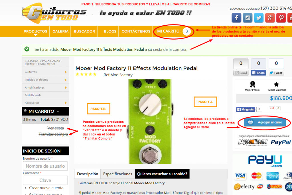 Compra en nuestra tienda online Guitarras EN TODO y paga en efectivo desde toda Colombia, NO necesitas cuenta bancaria ni Tarjeta de Crédito !!
